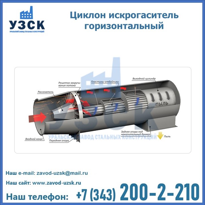 Горизонтальные циклоны-искрогасители ЦГ поставляются в Набережных Челнах в сборке или же транспортными единицами для последующей сборки, если предназначены для работы с большими объемами.