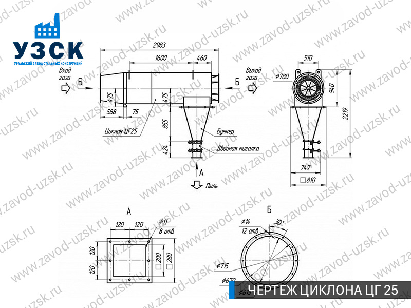 Монтаж циклона-искрогасителя ЦГ должен осуществляться непосредственно к горизонтальному вентиляционному каналу на входе в систему фильтрации и аспирации. Заказать изготовление по индивидуальному техзаданию или купить готовый циклон-искрогаситель ЦГ на заводе УЗСК в Набережных Челнах можно, оставив заявку прямо на сайте или позвонив по указанному телефону, уточнив все детали касательно продажи оборудования.