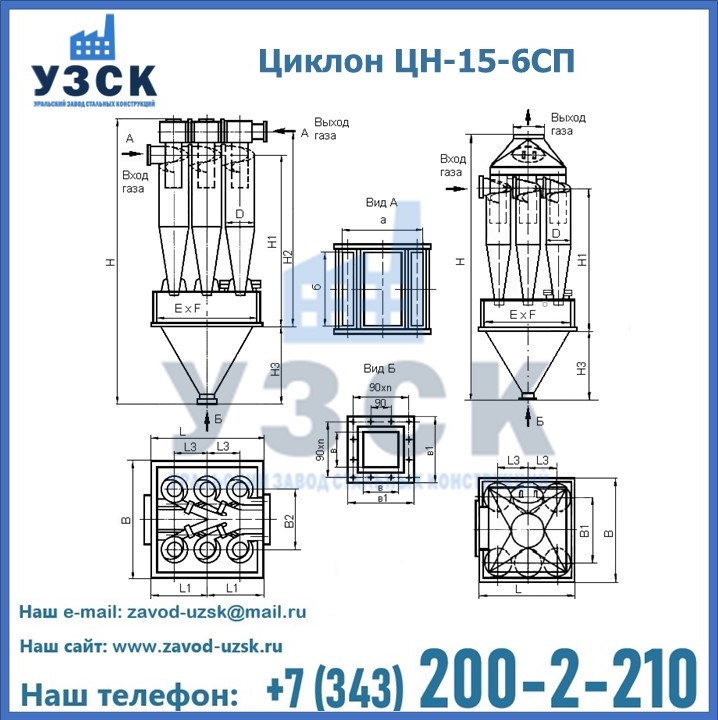 Завод «УЗСК» в Набережных Челнах предлагает большой выбор циклонов ЦН-15-600×6СП и прочих устройств, полностью укомплектованных и готовых к эксплуатации. Мы гарантируем соответствие оборудования всем требованиям ГОСТ и ТУ, износостойкость и высокую производительность предлагаемого оборудования. Уральский Завод Стальных Конструкций изготавливает и продает надежное, эффективное и производительное оборудование, имеющее длительную гарантию и большой эксплуатационный ресурс. Если требуется изготовить циклон нестандартных размеров, то такой вариант выполнения заказа тоже предусмотрен, так как предприятие имеет собственные производственные площади и надежных поставщиков. На все поставляемое или производимое оборудование имеются чертежи и прочая техническая документация. Заказать и купить циклоны или прочее оборудование высокого качества и по доступной цене можно через наш сайт или по указанному в разделе «Контакты» телефону.