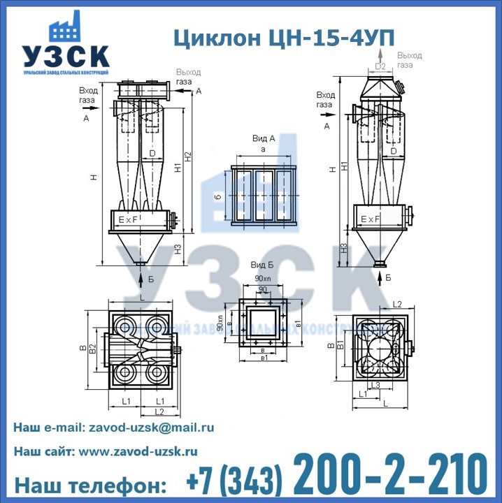 Завод «УЗСК» в Набережных Челнах предлагает большой выбор циклонов ЦН-15-700×4УП и прочих устройств, полностью укомплектованных и готовых к эксплуатации. Мы гарантируем соответствие оборудования всем требованиям ГОСТ и ТУ, износостойкость и высокую производительность предлагаемого оборудования. Уральский Завод Стальных Конструкций изготавливает и продает надежное, эффективное и производительное оборудование, имеющее длительную гарантию и большой эксплуатационный ресурс. Если требуется изготовить циклон нестандартных размеров, то такой вариант выполнения заказа тоже предусмотрен, так как предприятие имеет собственные производственные площади и надежных поставщиков. На все поставляемое или производимое оборудование имеются чертежи и прочая техническая документация. Заказать и купить циклоны или прочее оборудование высокого качества и по доступной цене можно через наш сайт или по указанному в разделе «Контакты» телефону.