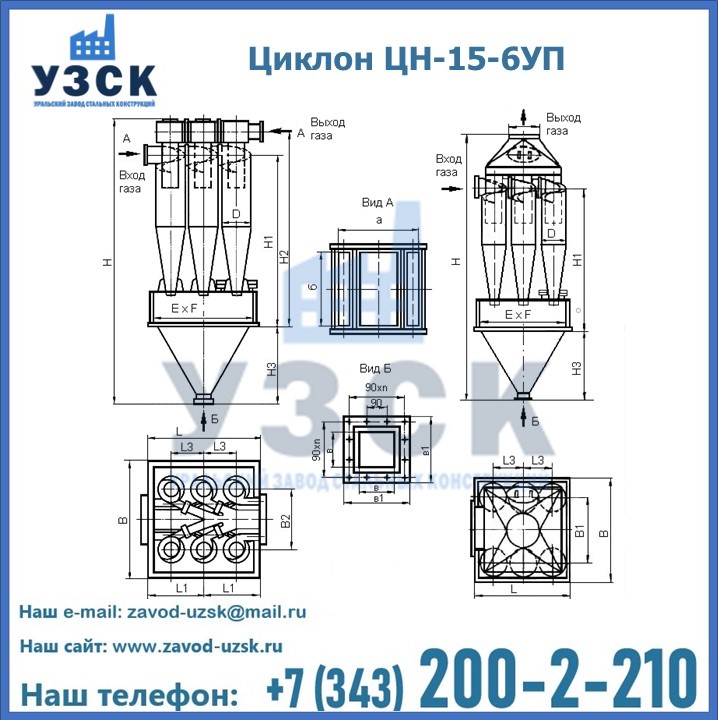 Завод «УЗСК» в Набережных Челнах предлагает большой выбор циклонов ЦН-15-900×6УП и прочих устройств, полностью укомплектованных и готовых к эксплуатации. Мы гарантируем соответствие оборудования всем требованиям ГОСТ и ТУ, износостойкость и высокую производительность предлагаемого оборудования. Уральский Завод Стальных Конструкций изготавливает и продает надежное, эффективное и производительное оборудование, имеющее длительную гарантию и большой эксплуатационный ресурс. Если требуется изготовить циклон нестандартных размеров, то такой вариант выполнения заказа тоже предусмотрен, так как предприятие имеет собственные производственные площади и надежных поставщиков. На все поставляемое или производимое оборудование имеются чертежи и прочая техническая документация. Заказать и купить циклоны или прочее оборудование высокого качества и по доступной цене можно через наш сайт или по указанному в разделе «Контакты» телефону.