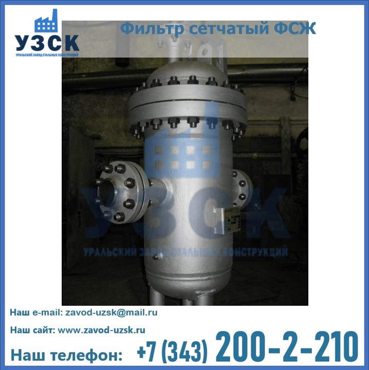 Очистку перекачиваемых жидкостей на предприятиях нефтяной, пищевой, горнорудной, фармацевтической и других отраслей промышленности эффективно выполнять с помощью жидкостного сетчатого фильтра — емкостное оборудование цилиндрической формы со съемной крышкой и элементом фильтрации внутри. Оснащенные им всасывающие линии насосных станций и установок защищены от проникновения твердых частиц в функциональные узлы гидравлической системы. Оборудование служит для перекачивания токсичных, агрессивных и иных эмульсий, суспензий, жидкостей. Купить фильтр сетчатый жидкостный ФСЖ в Набережных Челнах с гарантией производителя предлагает «Уральский завод стальных конструкций». Мы выполняем проектирование и изготовление ФСЖ по индивидуальным требованиям (климатическая зона, транспортируемая жидкость).