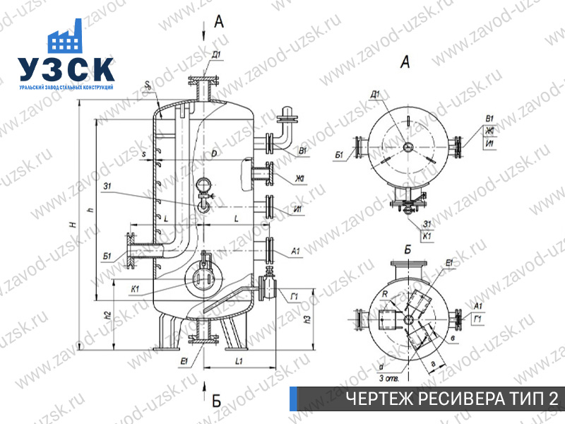 Ресивер высокого давления — это специализированное оборудование, разработанное для накопления и хранения воздуха или газа под давлением, а также для подачи рабочей среды на технологические линии предприятий. Завод «УЗСК» осуществляет изготовление газовых и воздушных ресиверов (воздухосборников) любой сложности. Мы предлагаем самые выгодные цены на ресиверы из углеродистой стали, ресиверы из легированной стали и ресиверы из нержавеющей стали в Набережных Челнах.