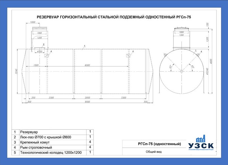 Описание стандартного резервуара РГС-75